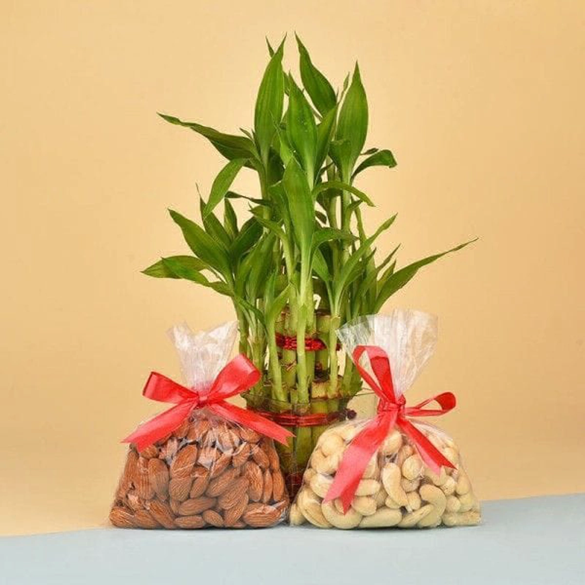 Discover the Perfect Blend of Nature and Nourishment with Our Lucky Bamboo and Dry Fruits Combo