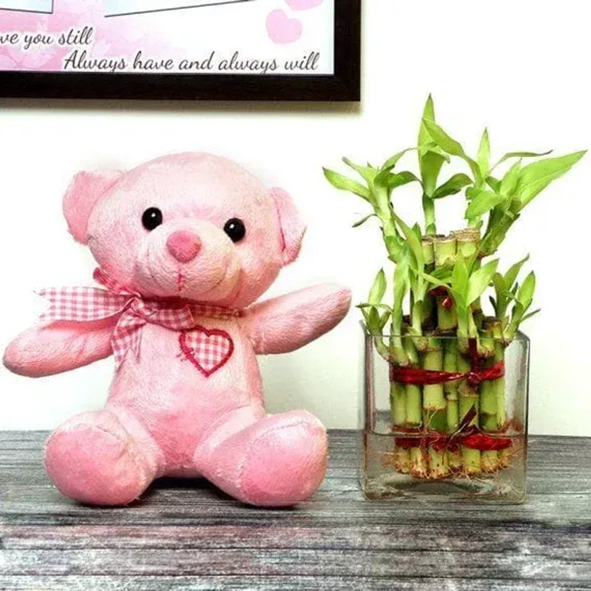 Discover the Perfect Blend of Charm and Luck with Our Lucky Bamboo & Teddy Bear Combo!