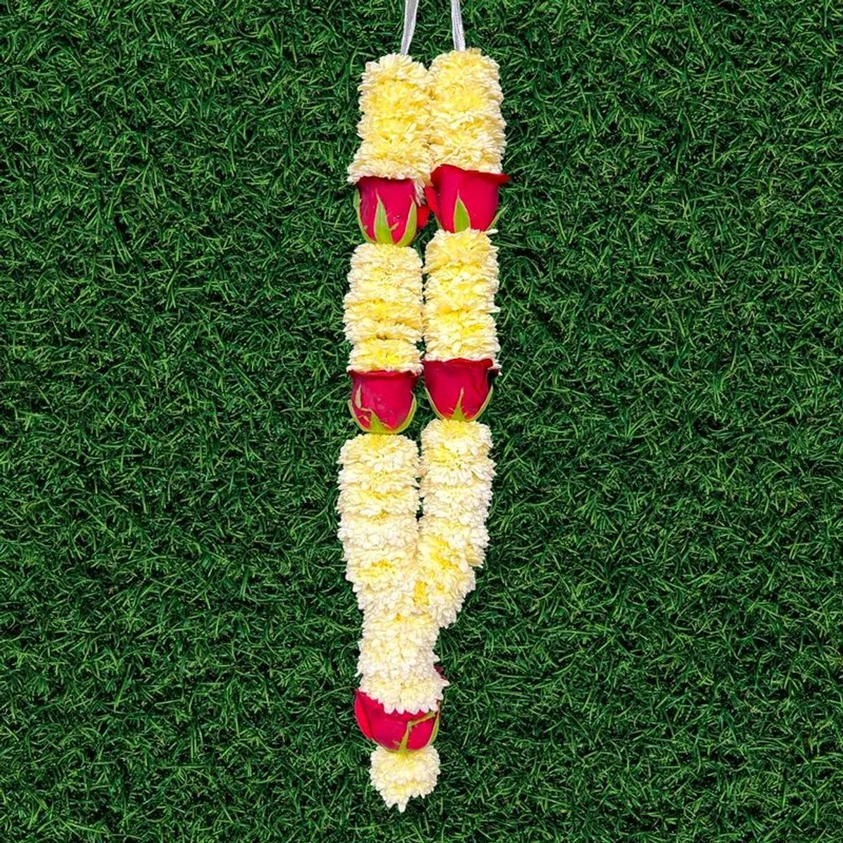 Looking for a stunning garland that combines the beauty of fresh flowers with timeless charm? The White And Red Mala is the ideal choice for special occasions, ceremonies, or simply to add grace to your moments. Crafted with care, this mala features a delightful combination of fresh white sawanti flowers and vibrant red roses, making it a true symbol of purity and love.